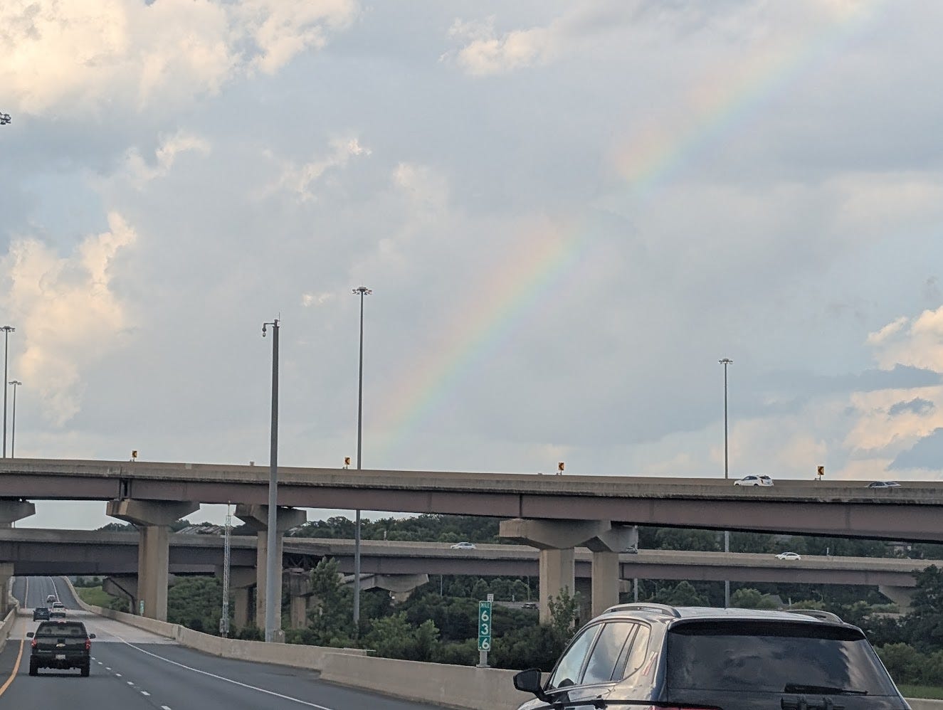 Image: A mediocre photo of a rainbow I took somewhere on I-95 between New York and Washington, D.C., aka The Hellway.