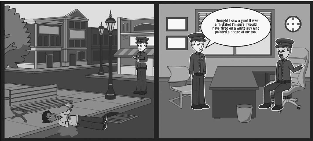 A white cop shoots an unarmed black man who’s holding up his cell phone. Afterward he said he saw a gun, and he’s sure he’d fire on a white person who made the same threatening gesture. Is this a story about racism?
