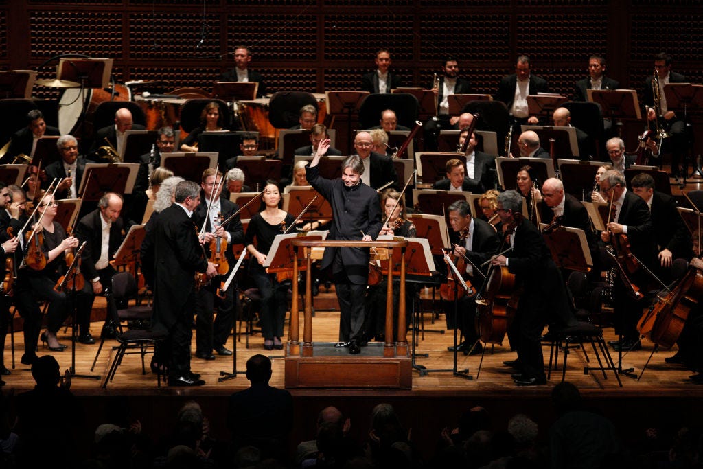 SAN FRANCISCO, CA - JAN. 18: Conductor Esa-Pekka Salonen and the San Francisco Symphony at the Davies Symphony Hall on Friday, Jan. 18, 2019, in San Francisco, Calif. Coronavirus-triggered performance cancellations brought about a $40 million loss of revenue. As a result, the musicians approved a 30 percent salary cut to help with solvency. (Santiago Mejia/The San Francisco Chronicle via Getty Images)