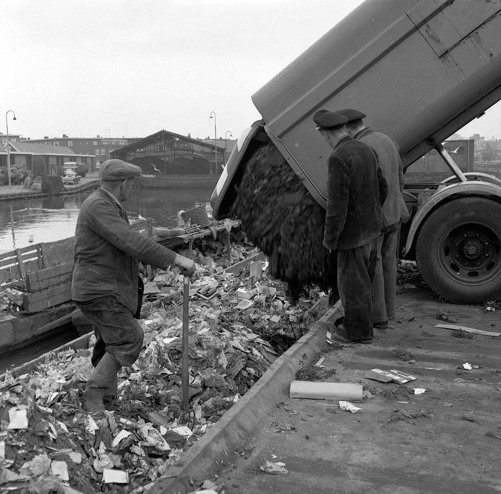 Questions? Comments? Responses to this newsletter that are really about other stuff? I’m at singalminded@gmail.com, or on Twitter at @jessesingal. Today’s lead image is of a 1959 Utrecht garbage situation, courtesy of Wikimedia Commons.
