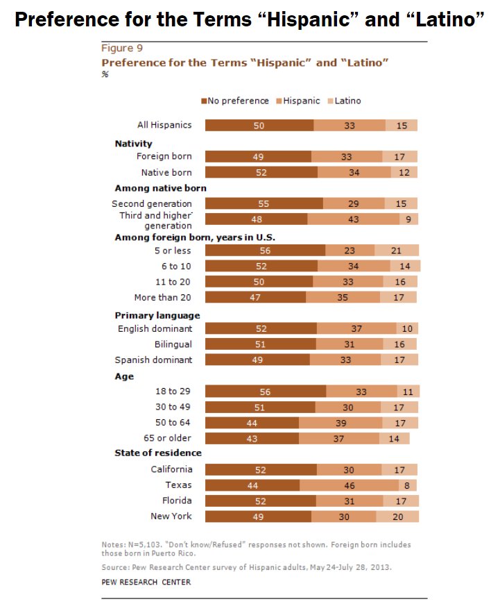 Some other examples of this: Many progressives, Latino and non-Latino alike, seem to have rather strong linguistic preferences about whether to use the word Hispanic as opposed to Latino (or, more recently, Latinx). But when actual, well, Latinos/Hispanics are polled on this question, their answer tends to be that they identify more with their country of origin or ancestry than with zoomed-out ethnic labels anyway, with only about half of members of these groups even having a preference — meaning it doesn’t make much sense for anyone to suggest one term or the other is “right” while the other is outdated or offensive: