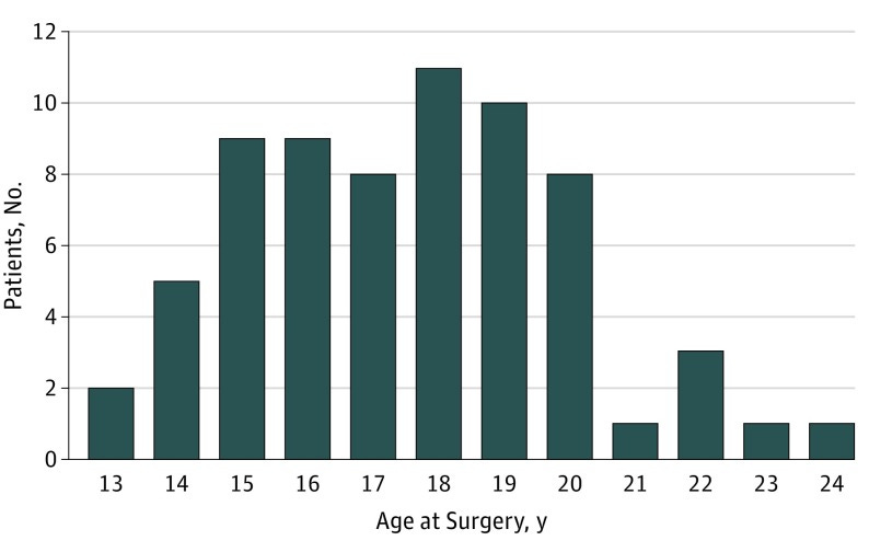 Plus, the U.S. is a wild west when it comes to trans healthcare (and, well, healthcare in general), and a lot of these guidelines are nonbinding, anyway. Everyone who follows this issue closely knows that some clinics are giving hormones to kids well under age 16, and (less frequently) some surgeons are performing surgery on minors. I know this both from voluminous anecdotal evidence from my reporting and from two papers published by clinicians at one of the most famous youth gender clinics in the country, in Los Angeles: This one shows they’ve given hormones to kids as young as 12, and this one shows they’ve referred kids as young as 13 for double mastectomies. The latter is indicated right here, in this bar graph from the paper: