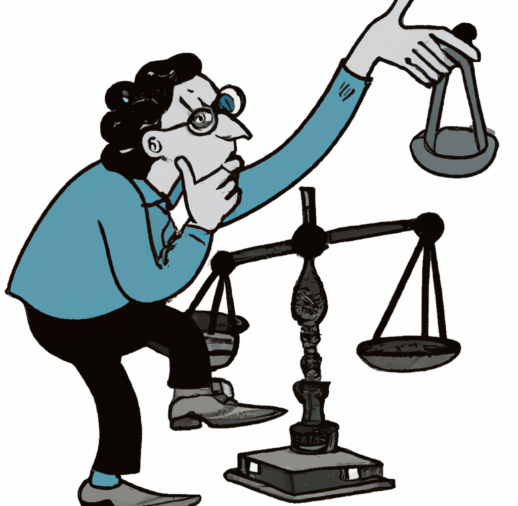 Questions? Comments? Accusations that I should have used this space to raise awareness of starving children? I’m at singalminded@gmail.com. I’m taking a Twitter break soon but follow my alternate account at @jsingalfeed — it’ll be used only to tweet out my work. The illustration was produced by DALL-E 2 after I prompted it with “A journalist looks at the scales of justice with a curious look on his face, cartoon style.”